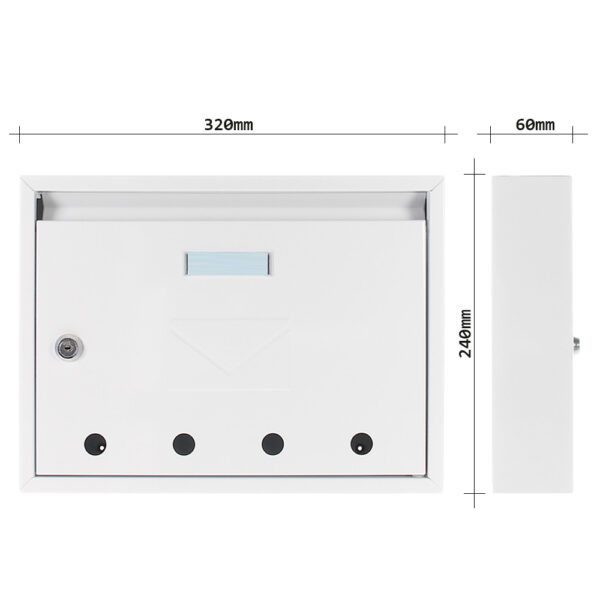 Mit seinem Korpus im Querformat sticht der Rottner Briefkasten Imola in der Farbe Weiß ins Auge. Pulverbeschichtetes Stahlblech wurde zu einem zeitlosen Briefkasten mit vielen Details geformt. Die Türe mit einem seitlichen Türanschlag glänzt mit einer zarten Prägung in Form eines Kuverts und 4 runden Sichtfenstern. Zur Personalisierung des Briefkastens finden Sie an der Tür ein Namenschild vor. Damit Ihnen die einfache Montage noch leichter fällt, finden Sie das passende Material und eine Bohrschablone im Lieferumfang des Briefkastens vor.