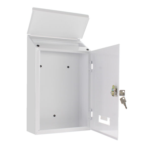 - weißer Briefkasten aus Stahlblech