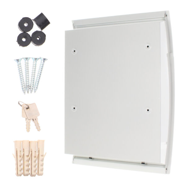 Zum zusätzlichen Schutz des Zylinderschlosses wird dieses durch die großzügige Klappe verdeckt. Damit die einfache Montage schnell von der Hand geht, finden Sie das passende Material gleich im Lieferumfang des Briefkastens vor.
