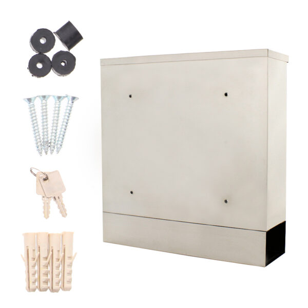 Ein wunderschöner schlichter Briefkasten und die passende Zeitungsrolle dazu – das ist das Gesamtpaket des Edelstahlsets Hochhaus II Inox, das von nun an an Ihrer Hausfassade zu sehen sein wird. Die Einwurfklappe besitzt eine kleine Tropfnase. Verwenden Sie zur Montage das beiliegende Material.