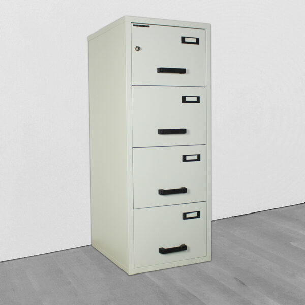 Sie suchen einen zuverlässigen Schubladentresor? Dann liegen Sie mit dem Rottner FireFile 4000 genau richtig. Verschließen Sie Ihre Utensilien und Wertgegenstände in vier geräumigen und vollausziehbaren Schubladen (auch für A4-Unterlagen passend). Jede Schublade lässt sich beschriften und ist individuell sperrbar. Geöffnet/versperrt wird der Schrank durch ein Zylinderschloss. Bei jeder Lade befindet sich seitlich ein kleiner Hebel, der nach links verschoben werden kann. Steht der Hebel in dieser Position, dann bleibt die Lade geöffnet, selbst wenn der Schrank versperrt ist. Befindet sich der Hebel rechts, dann wird die Lade verschlossen. Der Rottner Vertikalschrank hat eine kompakte Größe und schützt 60 Minuten lang Dokumente und Unterlagen vor Feuer. Zwei Schlüssel für das Zylinderschloss sind im Lieferumfang enthalten.