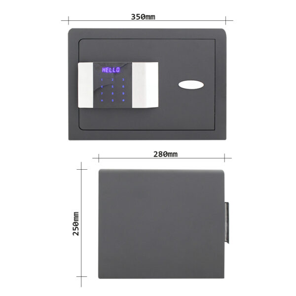 Sie sind auf der Suche nach einem hochwertigen Hoteltresor mit Elektronikschloss? Der Prestige 250 bietet alles, was ein Möbeltresor haben muss – der hochwertige Tresor hat eine Türstärke von 50mm und einen Korpus von 2mm. Die Scharniere sind innenliegend und das Öffnen und Schließen der Bolzen erfolgt automatisch ohne Drehgriff. Sehr praktisch ist die Innenbeleuchtung – Sie erkennen sofort den Tresorinhalt. Das Elektronikschloss mit LED Touchbedienfeld schützt zuverlässig Ihre Wertgegenstände vor ungewollten Zugriffen, ist leicht zu bedienen und kann im Notfall mit Schlüssel oder Mastercode geöffnet werden.