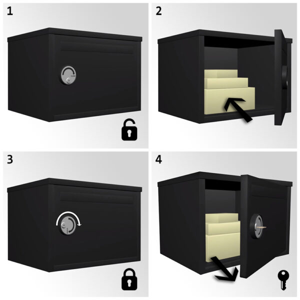 Mit diesem Briefkasten können Sie Pakete in Empfang nehmen, auch wenn Sie nicht Zuhause sind. Der Briefträger öffnet mit dem Drehgriff (Drehung nach links) das Paketfach, hinterlegt das Paket und dreht den Griff nach rechts – dadurch wird das Ablagefach verschlossen. Kein Schlüssel ist dafür nötig. Der Briefkasten kann erst wieder mit einem dafür vorgesehenen Schlüssel geöffnet werden. Ihr Paket ist vor ungewollten Zugriffen und vor Witterungseinflüssen geschützt.