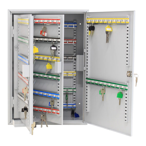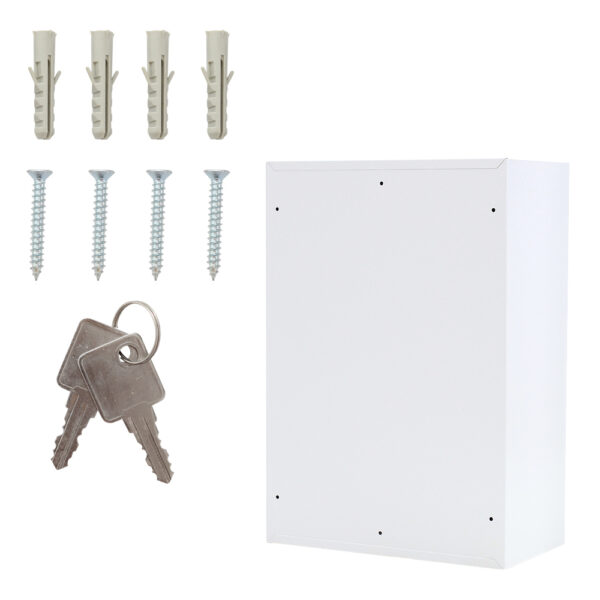 Der Rottner Schlüsselschrank S 250 mit einfachem Zylinderschloss eignet sich optimal zur Schlüsselaufbewahrung und ist zur Wandmontage vorgesehen. Unsere Hakenleisten sind im Rastersystem verstellbar und alle Modelle sind mit schwenkbarem Schlüsselregister ausgestattet. Weiters besitzt der Schlüsselschrank 2 Zwischenwände. Für Ihre Schlüssel sind 250 Schlüsselanhänger im Lieferumfang enthalten, ebenso das Montagematerial. Ordnung, Übersicht und Sicherheit – Rottner Schlüsselschrank S 250!