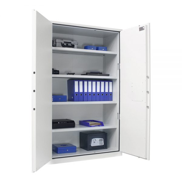 Der Rottner Stahlbüroschrank Office 4 Premium sorgt für Sicherheit und Schutz für Ihre Dokumente, Wertpapiere, Polizzen etc. in Ihrem Büro. Der erstklassige zeitlose Stahlbüroschrank mit vier Fachböden bietet für bis zu 70 Ordner Platz und schließt mit einem leicht zu bedienenden Doppelbartschloss. Das für die geprüfte Montage benötigte Material finden Sie im Lieferumfang des Tresors vor. Ein Stahlschrank, wie er in keinem Büro fehlen sollte!
