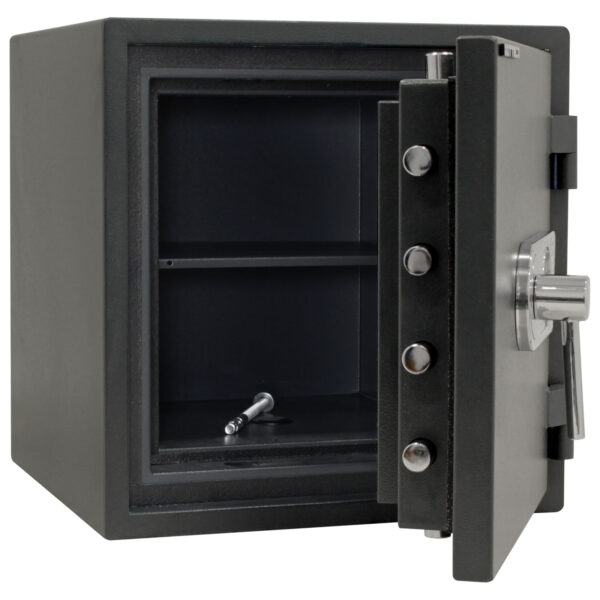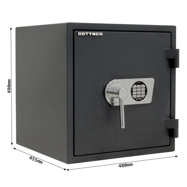 Verwahren Sie Ihre Dokumente und Wertgegenstände sicher vor Diebstahl, Hitze und Feuer! – Der Rottner Papiersicherungsschrank FireProfi 50 Premium ist mit geprüftem Sicherheits- und Feuerschutz (60 Minuten für Papier) der ideale Tresor dafür. Der hochwertige schlichte Tresor mit einem Fachboden bietet Platz für 4 Ordner. Für die fachgerechte Montage ist das Befestigungsmaterial im Lieferumfang enthalten, ebenso die 9 Volt Batterie für das Elektronikschloss, das im Notfall Notbestromt werden kann.
