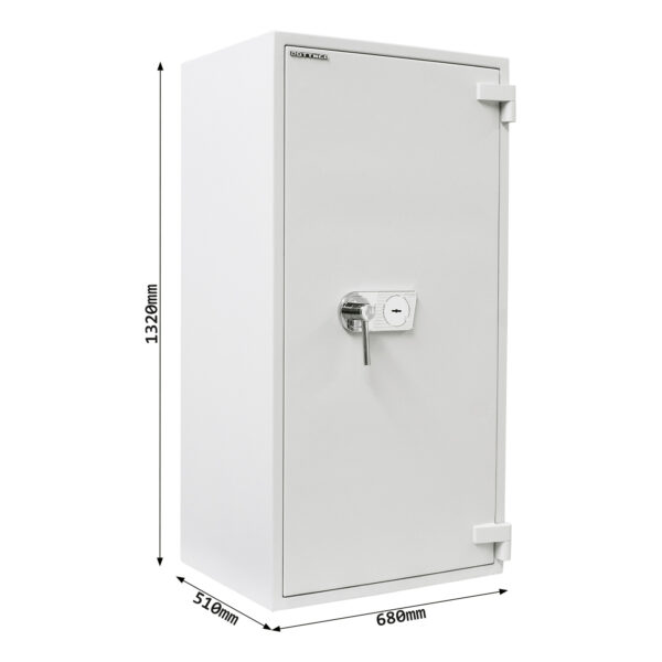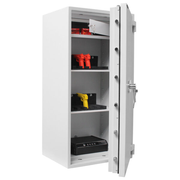 Der Rottner feuersichere Wertschutzschrank EN3 Diamant Super Fire Premium DO130 überzeugt mit seinem Einbruchschutz, einem 30-minütigen Schutz vor Feuer (Papier) und der EMA (Einbruchmeldeanlagen)-Vorbereitung! Der robuste Wertschutzschrank ist mit drei Fachböden und einem herausnehmbaren Innentresor (190 mm hoch) perfekt ausgestattet. Es können bis zu 25 Ordner, Dokumente, Reisepass, Fotoalben etc. aufbewahrt werden. Für die fachgerechte Bodenverankerung ist das Material im Lieferumfang enthalten, ebenso die beiden Schlüssel zum Doppelbartschloss.
